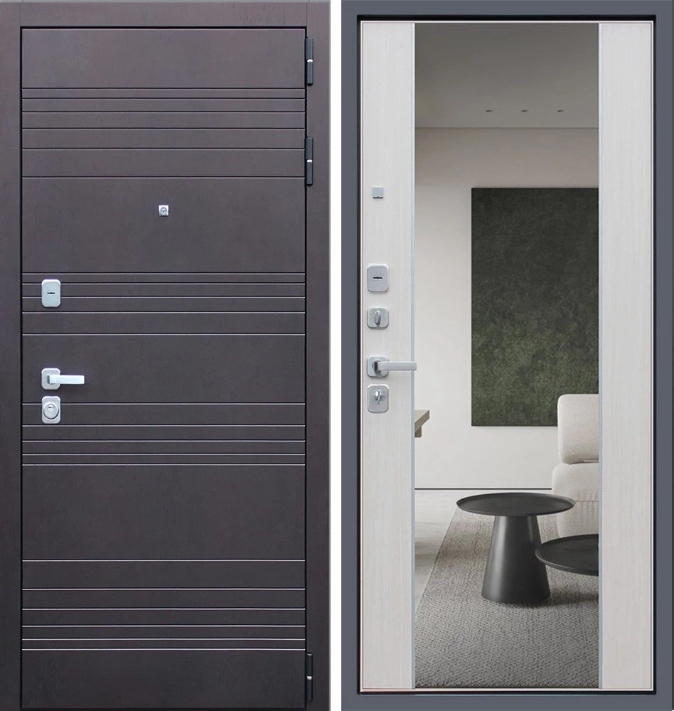Надежная входная Дверь Дуэт с зеркалом премиум класса по цене 46 649 руб. Большая толщина стали защитит от проникновения в ваш дом, квартиру или коттедж. Используется очень качественная фурнитура: замки, цилиндры, ручки, защелки. Покрытие и отделка двери изготовлено под внимательным контролем производителя. Дверь имеет долгий срок службы и гарантию.